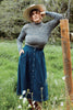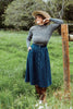 The Bonnie Skirt making a return in 7 ounce midweight, prewashed linen perfect for year round wear. An investment piece for your wardrobe. The skirt has 9 buttons up the front and a gathered midi length.  The front waist is flat, but the back has elastic making for an easy fit. The skirt pairs well with oversized sweaters and tank tops, sandals and boots. Its hits at the high waist and features easy, comfortable pockets!