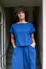 The Jones Top is a shorter version of our best selling Linden Top minus the pockets. Designed to make a set with the Larkin pants. The Jones is designed with a nice relaxed and boxy fit, set up to complement your high waist pants.