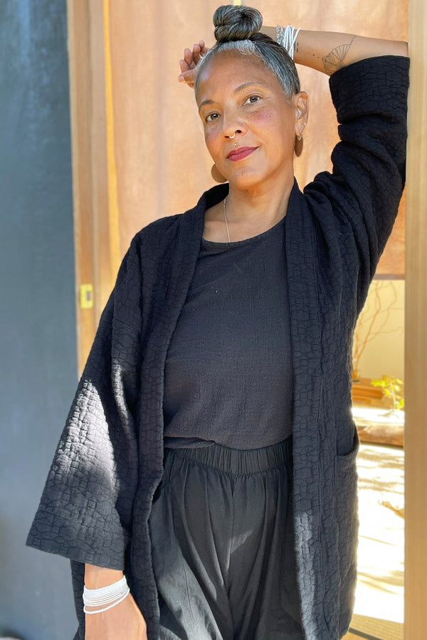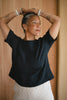 News Flash! We made a top that is not cropped! We promise this top will not show any skin when you reach for the milk. Sewn In our signature woven fabric, please welcome our Hugo Tee into the fold. It is very easily tuckable into any bottoms you're wearing. We recommend rolling the sleeves up to complete the look.