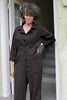 For many years, Stacy wore a much loved vintage jumpsuit on our biggest of work days. Think expensive outdoor photoshoots, all day set up for tradeshows, fittings with multiple size models,  days designed to crush you like a soda can. And yet, there she was at days end looking like she could go for another 24 hours. Was it the jumpsuit or the woman, no one will ever know. We decided we must bring this magic to our beloved customers via this jumpsuit. If you have been around for a while you might have noticed that we haven’t made a jumpsuit in a very long time because the fit is seriously complex. Nonetheless, we had seen this suit go so hard for so long, we threw caution to the wind and embarked on the Ripley jumpsuit